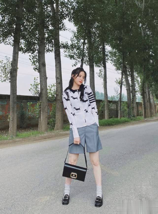 最后这身穿搭是采用了选择浅色系。黑白印花的针织衫配灰色西装短裤,混搭风十足,小皮鞋+堆堆袜显得腿很细很白。比起甜美少女的服装按穿搭,这身更显帅气随性,搭配黑色包包更多了几分品味,低调中又很有内涵。看了欧阳娜娜这几身穿搭,你最喜欢哪一套呢?
