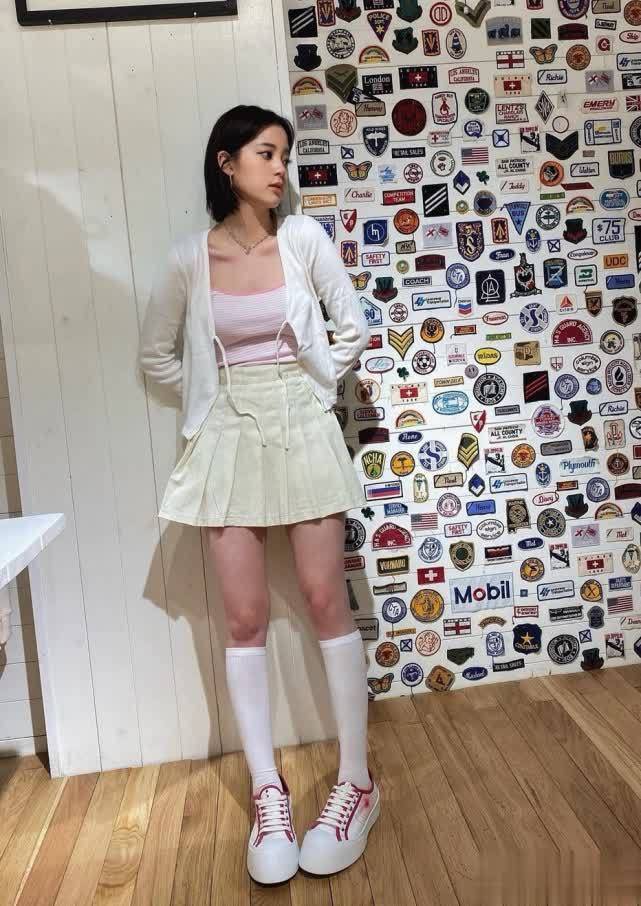欧阳娜娜这身穿搭很符合她的气质和年龄,小吊带配百褶裙青春靓丽,再加上一双小白鞋和中筒袜,腿很好看,属于比较修长匀称的类型。整个造型很有青春活力的气息,也适合学生党在校园里穿,甜美又养眼,大家喜欢这种风格吗?