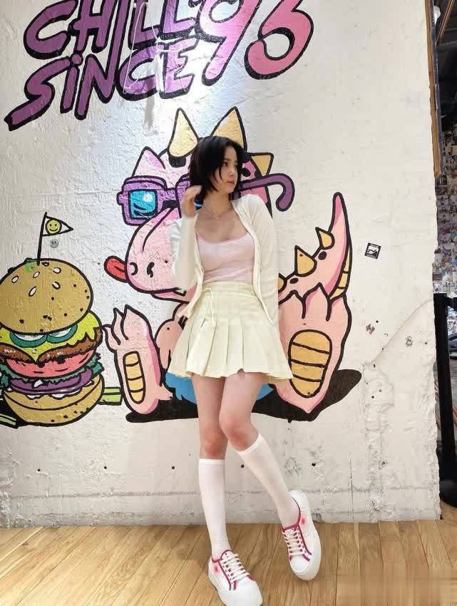 欧阳娜娜晒短发照,百褶裙配中筒袜少女感足,美腿吸睛!
